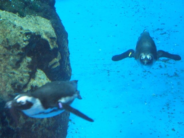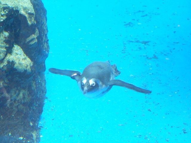 2021年09月18日 京都水族館 ぺんぎん カテゴリ:写真 ブログネタ:そうだ、水族館に行こう。 に参加中! こんにちは さて、最後に回ったのはペンギンです。 オットセイたちと同じで、水の中のペンギンは動きが速い速い。 こちらも何枚もとりまくってようやくみられる程度にブレのない写真が撮れました。 なんか、目が合ってるような気がしますね。 近くにいた子供がひものようなものをガラスの前で振っているとペンギンがその紐につられて動き回っていました。 陸で見るペンギンよりスマートに動き回るペンギンを見るのは楽しいですね。 コメント コメントフォーム 名前 コメント 記事の評価 リセット リセット 顔 星 情報を記憶 コメントを投稿する
