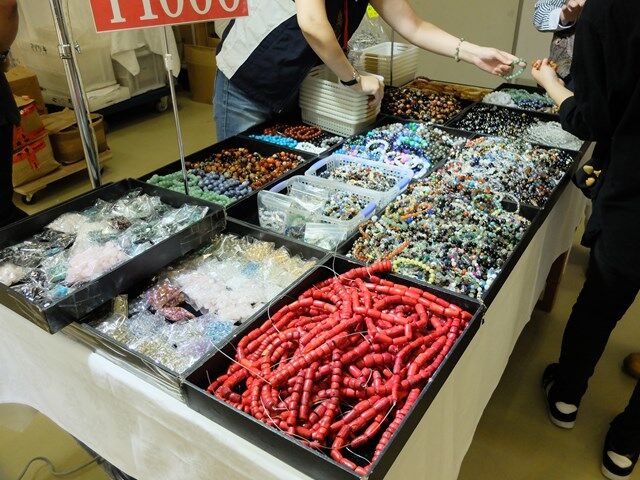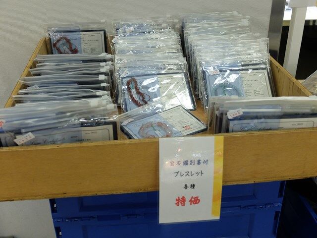 ワゴンのブレスレッドを一つ一つ手に取って見て行きます。