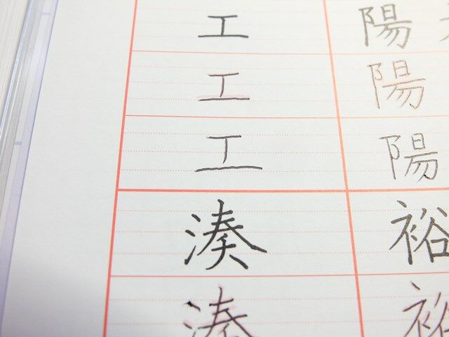 「工」という文字の下の横線を書いていると、凸凹がよく指に