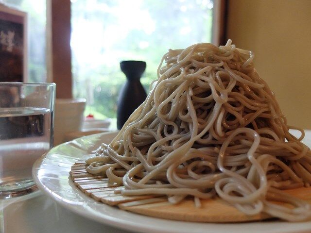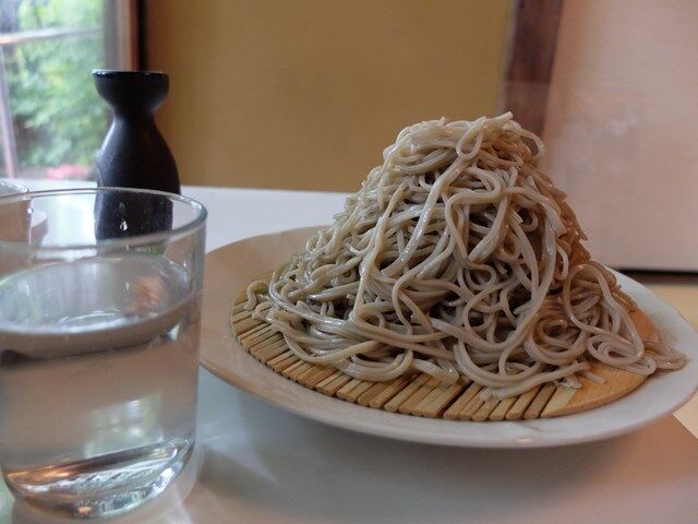 に着くとまずはいつもの通りに、盛りそばの特盛と焼酎のストレート、