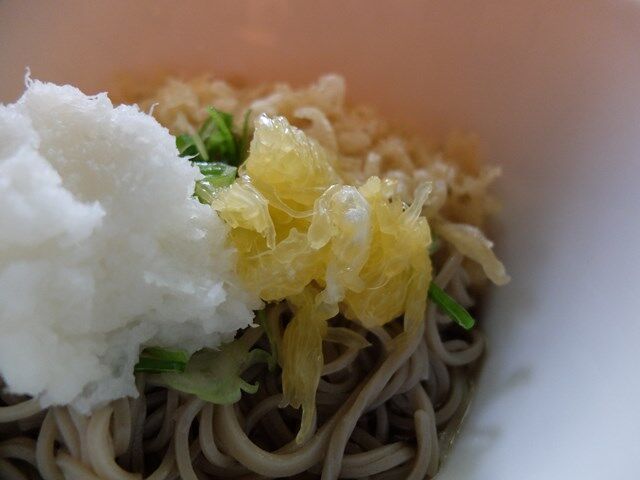 庭で育てている夏みかんを使った、「夏みかんそば」があると。