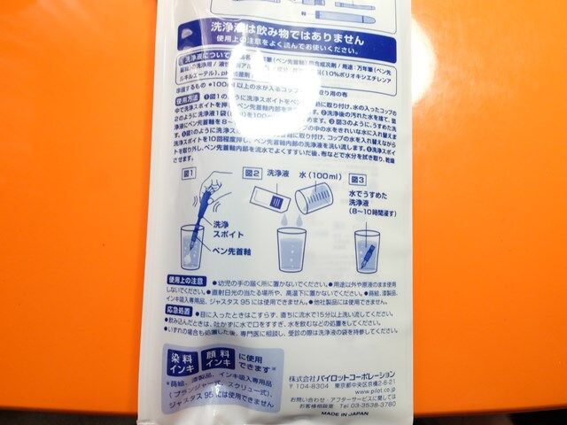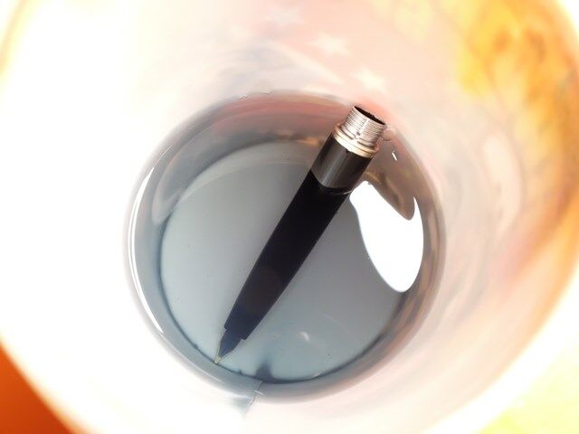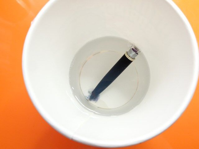 洗浄液を混ぜて万年筆を沈めます。
