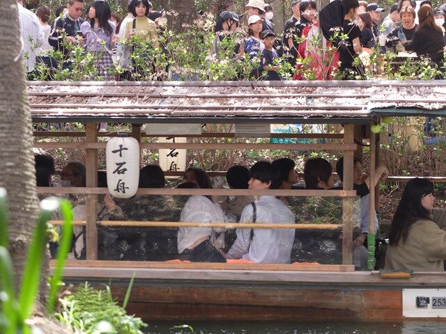 2024年04月11日 伏見で花見 カテゴリ: こんにちは 雨が降ってしまい花を打ち落としてしまっているようです。 今年の桜は咲いたと思ったらすぐに散ってしまっているように感じます。 4月8日 まだ桜が満開のころに、伏見の十石船が通る川辺で桜の祭りがありました。 毎年4合瓶とつまみをもってこちらでお花見させていただいています。 対岸には飲食販売の屋台が見えます。 ただ、対岸は飲食を買う人が多いので立ち止まることも難しいです。 ゆっくり桜を眺めるには此岸の方がゆっくりできます。 時々目の前を十石船が通っていきます。 今年も雨に降られることもなく、いいお花見ができました。 コメント コメントフォーム 名前 コメント 記事の評価 リセット リセット 顔 星 情報を記憶 コメントを投稿する