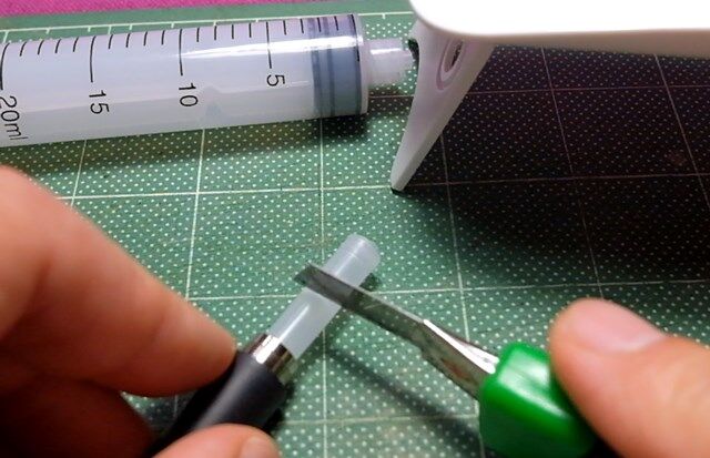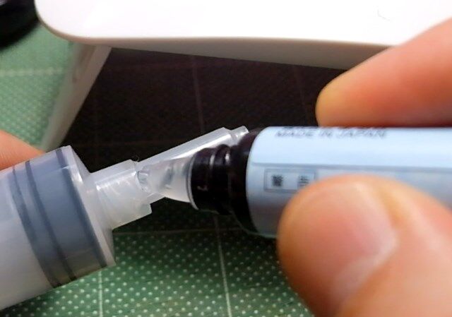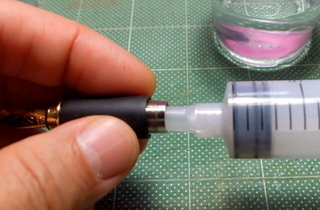 ペン先を洗う時に、作った道具を万年筆の首軸にはめます。