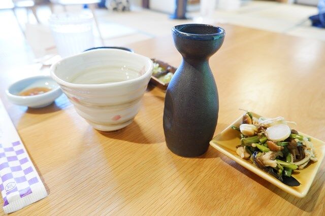 まずは山菜をつまみながら焼酎を呑んで、蕎麦を待ちます。