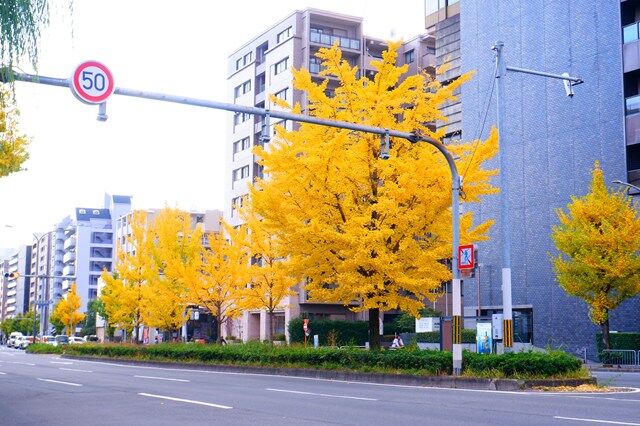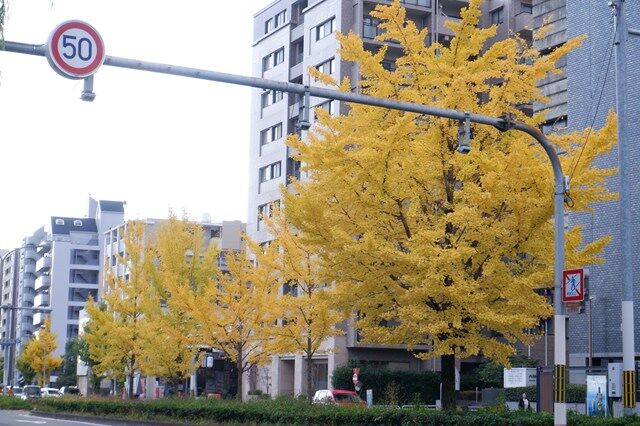 イチョウがやっと黄色く色づきましたね。