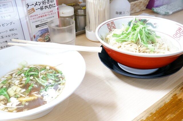 こっちの替え玉の入った丼の方に、1杯目で残しておいたスープを