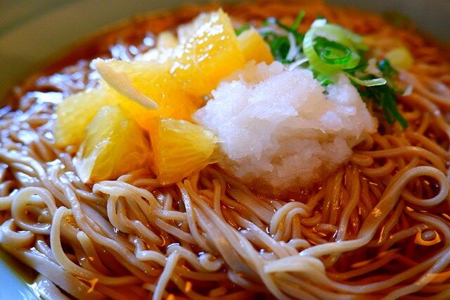 夏みかんがまだあるとのことでご無理を言って夏みかんそばを