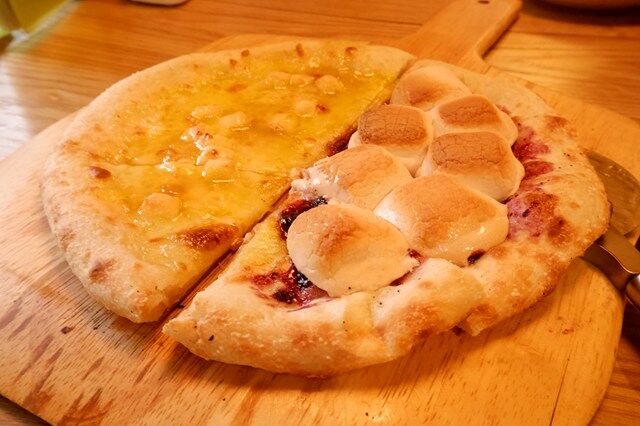 ブルーベリーソースと蜂蜜のハーフ&ハーフです。