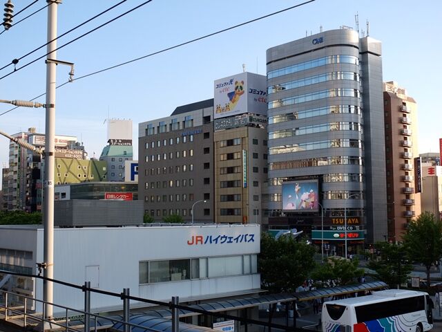 ホームから見た名古屋の景色。