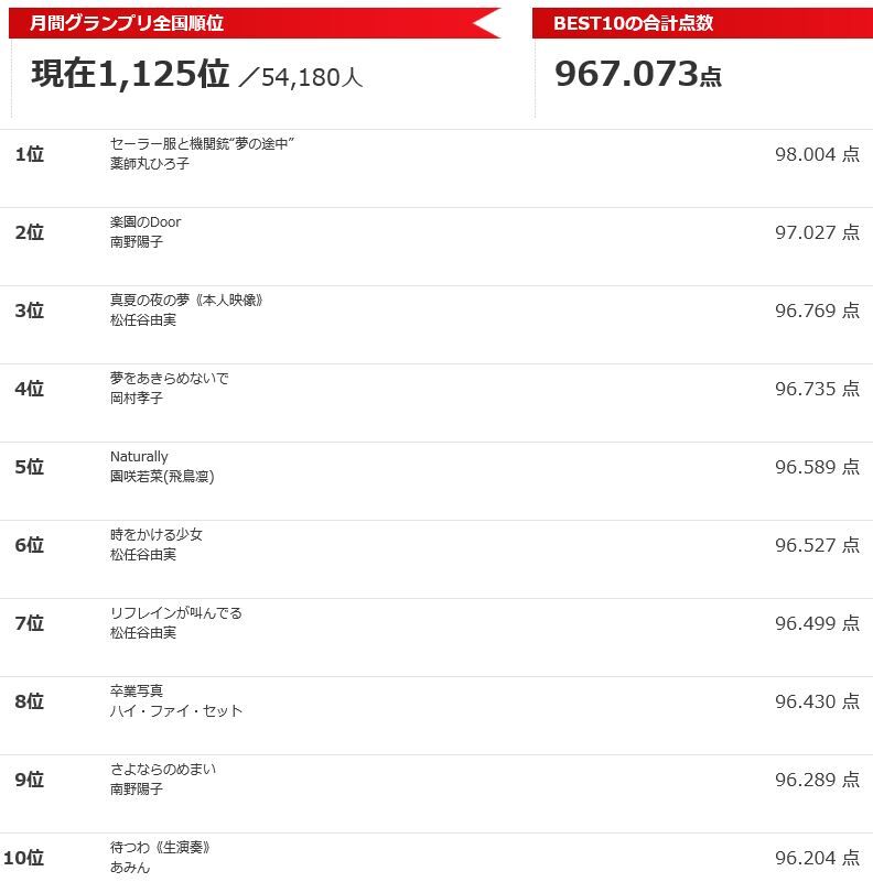 2018年07月11日 joy3 カテゴリ: こんにちは 薬師丸ひろ子のセーラー服と機関銃は鉄板ですねえ。 音の高低の変化が少ないというのが音程のミスを減らしている要因ですね。 結構多くの高得点者がセーラー服と機関銃を歌っているようです。 やっぱり高得点鉄板曲として実は有名な歌だったんですね。