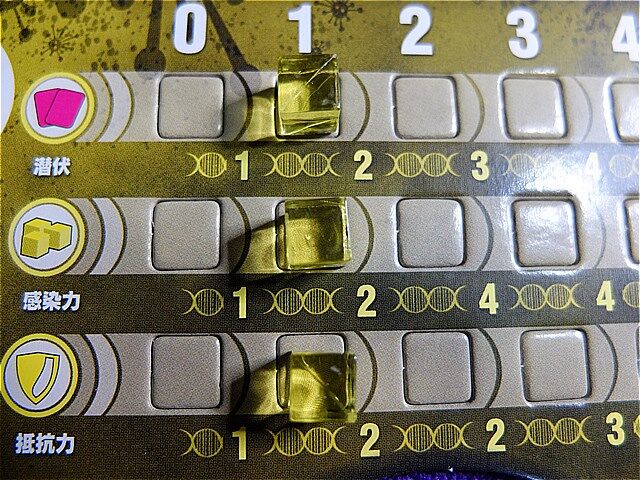 最初は潜伏も感染力も抵抗力もレベル1でスタートします。
