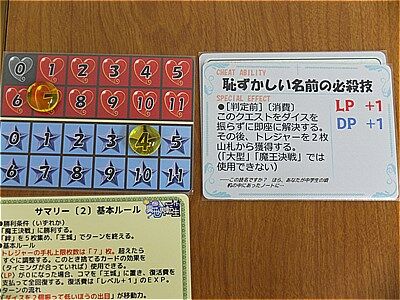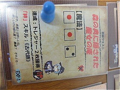 サイコロはクエストカードのサイコロの絵の上に合わせて置きます。