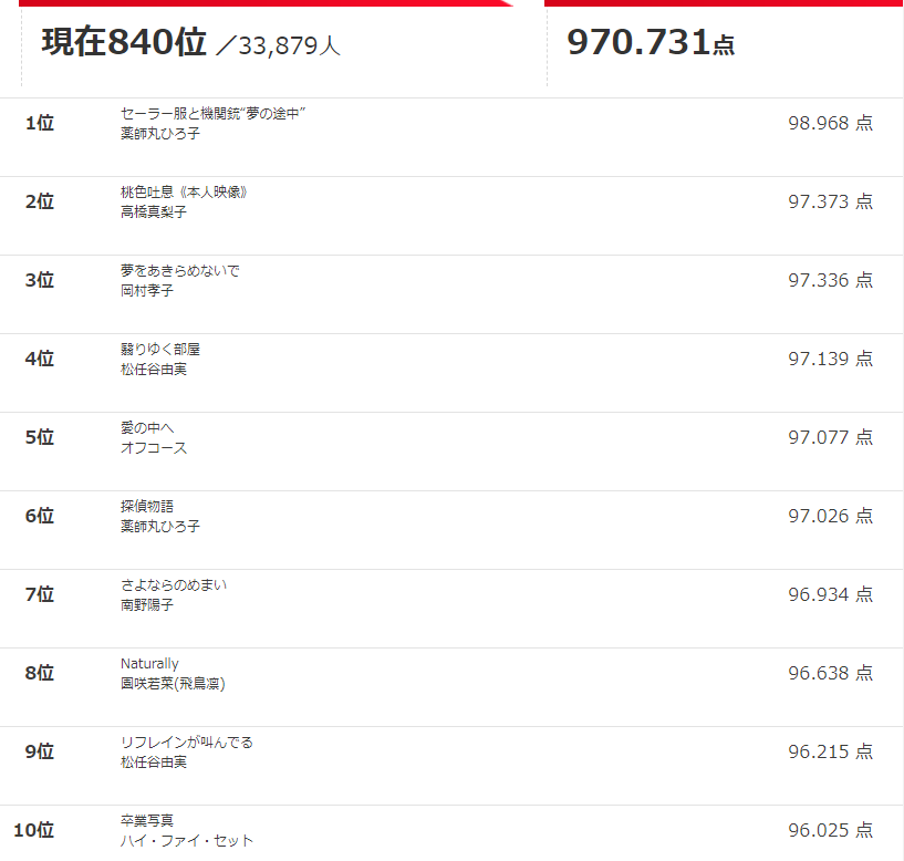 昨日のヒトカラでこれまでの最高得点が伸びました。
