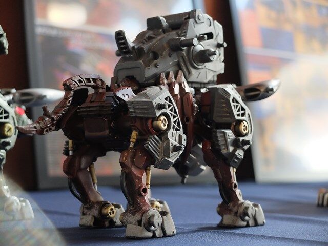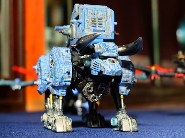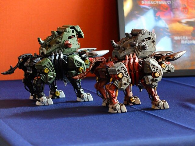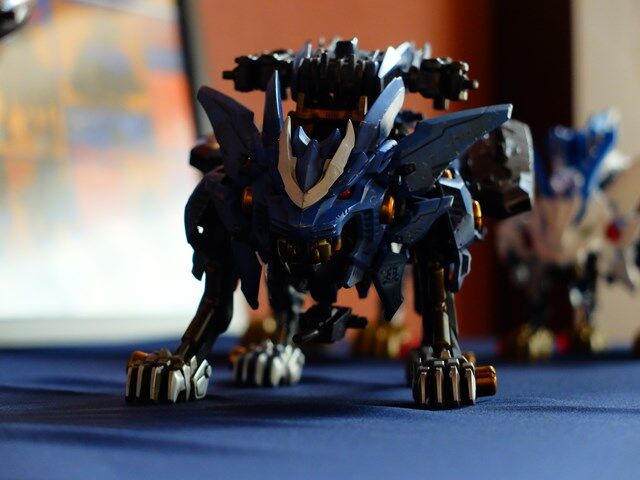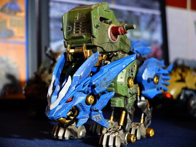 後ろの2体のライガー型が素組みで左の青いライガーが制作された作品です。