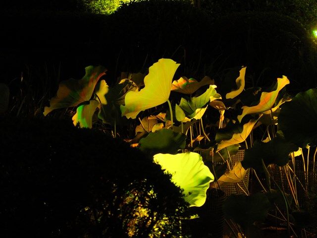 蓮の葉があり、それにも照明が当てられていました。